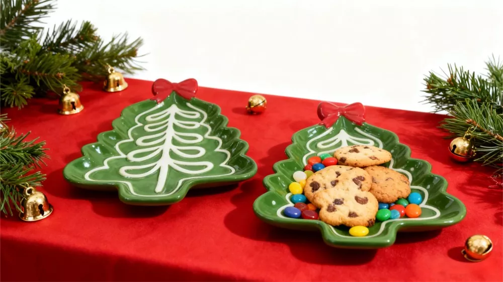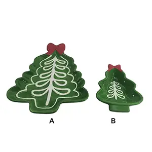 Quà tặng ngày lễ vẽ tay trên đĩa cây thông Noel bao gồm hai phiên bản: Phiên bản A (lớn) phù hợp để phục vụ các món chính và món tráng miệng, trong khi Phiên bản B (nhỏ) hoàn hảo để trang trí tinh tế các món ăn nhỏ, đáp ứng nhu cầu đa dạng trên bàn ăn. Phía trên được trang trí ngôi sao vàng hoặc nơ đỏ, kết hợp với hoa văn vẽ tay, thể hiện tinh thần lễ hội trong từng chi tiết. Bộ đồ ăn tinh tế và thiết thực này chắc chắn là sự lựa chọn tốt nhất cho bàn tiệc Giáng sinh của bạn!