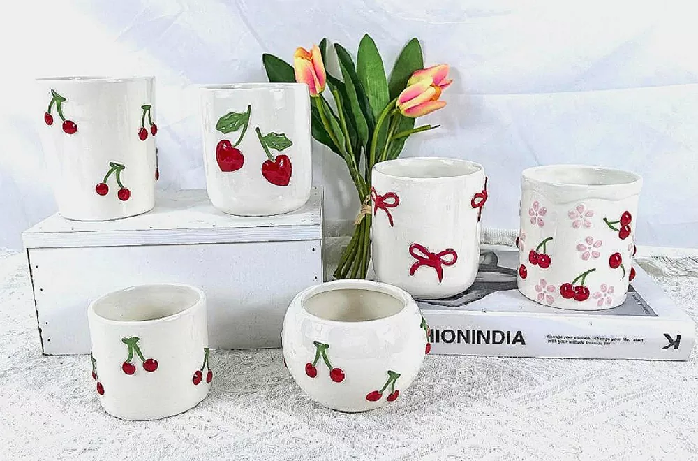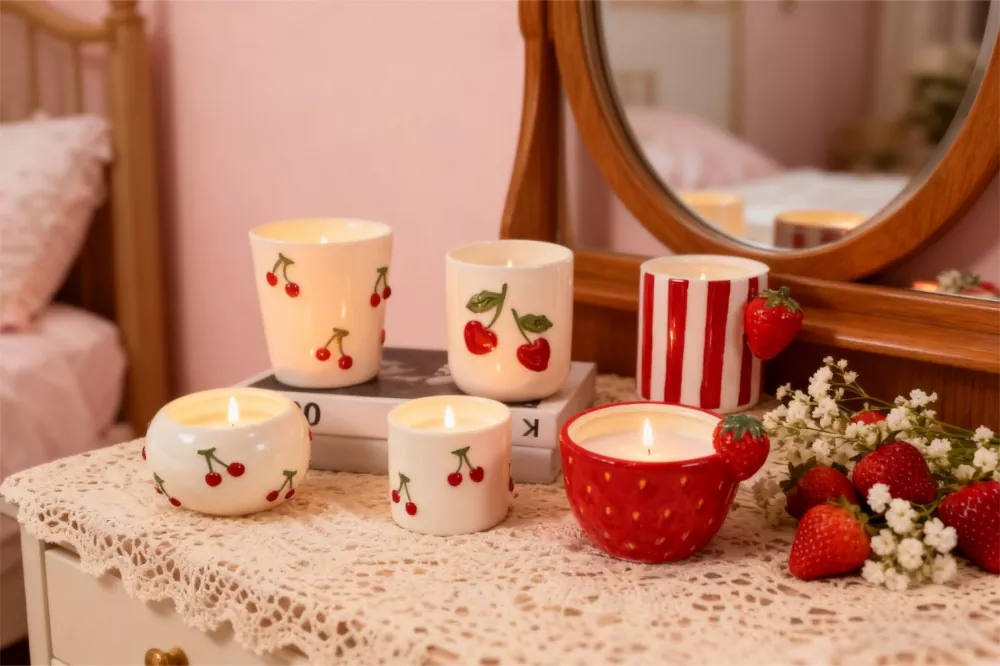 Dòng lọ nến gốm siêu đáng yêu của BYF nổi bật với những lọ nến gốm thủ công cao cấp với phong cách thiết kế “siêu dễ thương”. Các thiết kế kết hợp các yếu tố ngọt ngào cổ điển như quả anh đào đỏ, nơ ba chiều và dâu tây, với lớp men mịn và hình dạng đa dạng. Được làm bằng vật liệu an toàn và thân thiện với môi trường, nó có khả năng chịu nhiệt tuyệt vời và hoàn toàn phù hợp với bấc tiêu chuẩn và các đế sáp khác nhau, khiến nó vừa là hộp đựng nến chất lượng cao vừa là một vật trang trí nghệ thuật giúp nâng cao phong cách trang trí ngôi nhà của bạn.